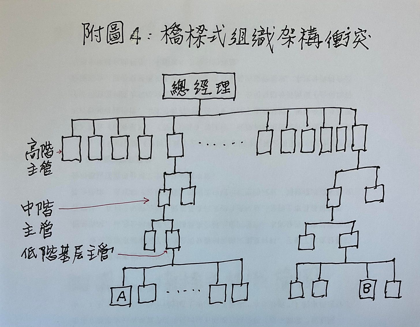 讓我們先看看圖4:橋樑式組織架構衝突。